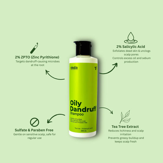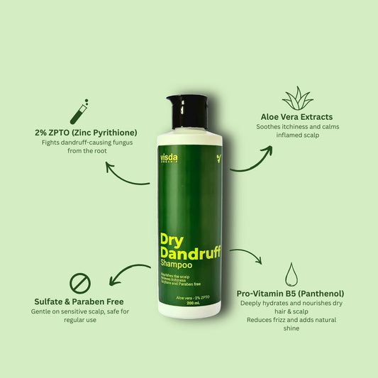 Visda Organix is the most efficient solution for dandruff-ridden hair. Consists of natural, organic ingredients and is free of sulfate, paraben, and other toxic chemicals. We provide two shampoos; Dry Dandruff Shampoo for dry and flaky scalp and Oily Dandruff Shampoo for oily and greasy scalp. Our brand aims to make your hair completely dandruff-free and be your way to a healthy lifestyle.